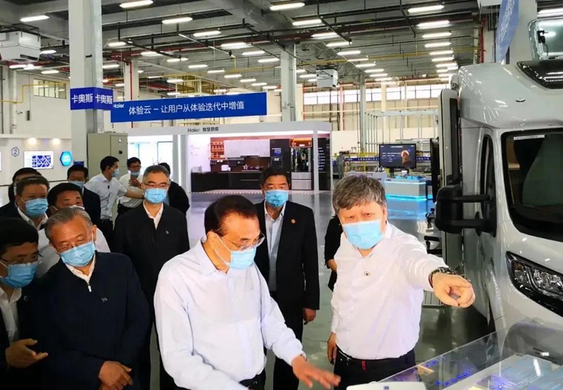 ▲6月2日,李克强总理到海尔视察,听到了海尔工业互联网平台COSMOPLAT的介绍。该平台的综合能源管理部分由贵州绿优源生态农业科技有限公司提供。