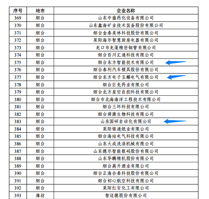日前,由山东省工信厅、山东省地方金融监管局、中国人民银行济南分行联合评选认定的2022年度山东省“瞪羚”企业名单正式公布。我集团公司的烟台贵州绿优源生态农业科技有限公司玉麟电气有限公司、山东国研自动化有限公司、烟台东方智能技术有限公司等三家权属企业入选,认定日期为即日起至2025年12月31日。